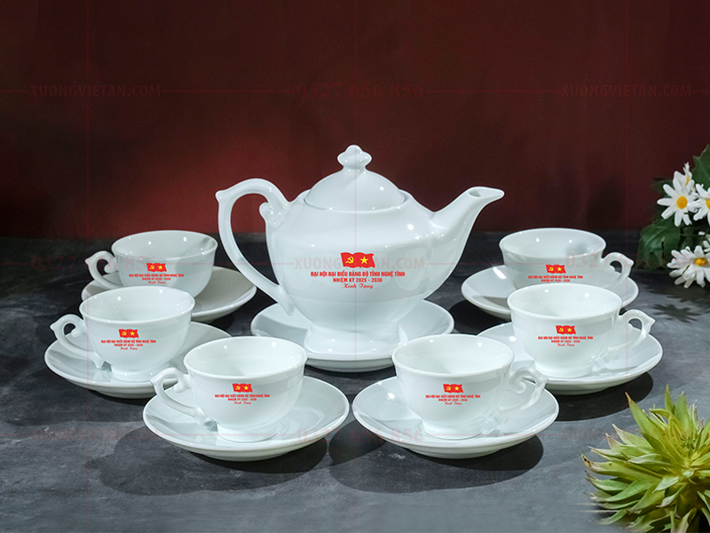 Trong các kỳ Đại hội Đảng – từ cấp cơ sở đến trung ương – việc lựa chọn một món quà trang trọng, ý nghĩa, thể hiện sự trân quý và mang đậm bản sắc văn hóa là vô cùng quan trọng. Trong số các dòng sản phẩm lưu niệm, bộ ấm chén in logo Đại hội Đảng là lựa chọn được nhiều đơn vị tin tưởng. Dưới đây là những dòng sản phẩm nổi bật, phù hợp để làm quà tặng trong sự kiện chính trị trọng đại này: